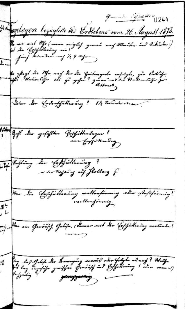 The original documents covering the German, Belgian and Dutch border region include letters and most astonishingly formal macroseismic questionnaires of the Prussian authorities that have not been used in any modern scientific study to date.