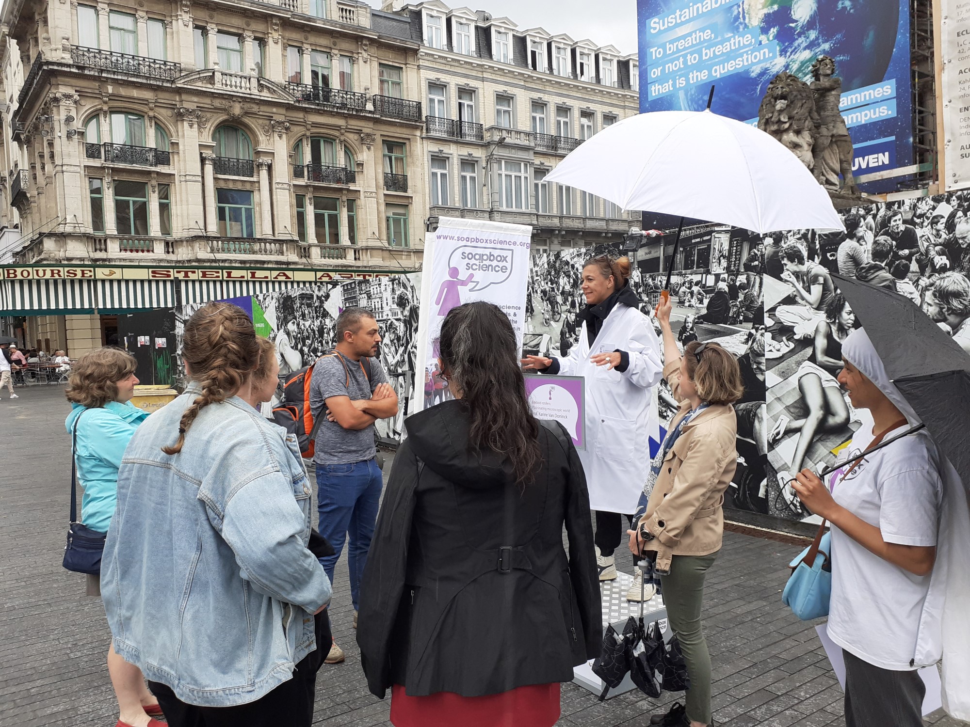 On Saturday, June 24, 2023, from 2 p.m. to 5 p.m., 12 women scientists in Belgium will tell you about their research during the Soapbox Science Brussels event at the Carrefour de l’Europe/Europakruispunt, in front of the Central Station.