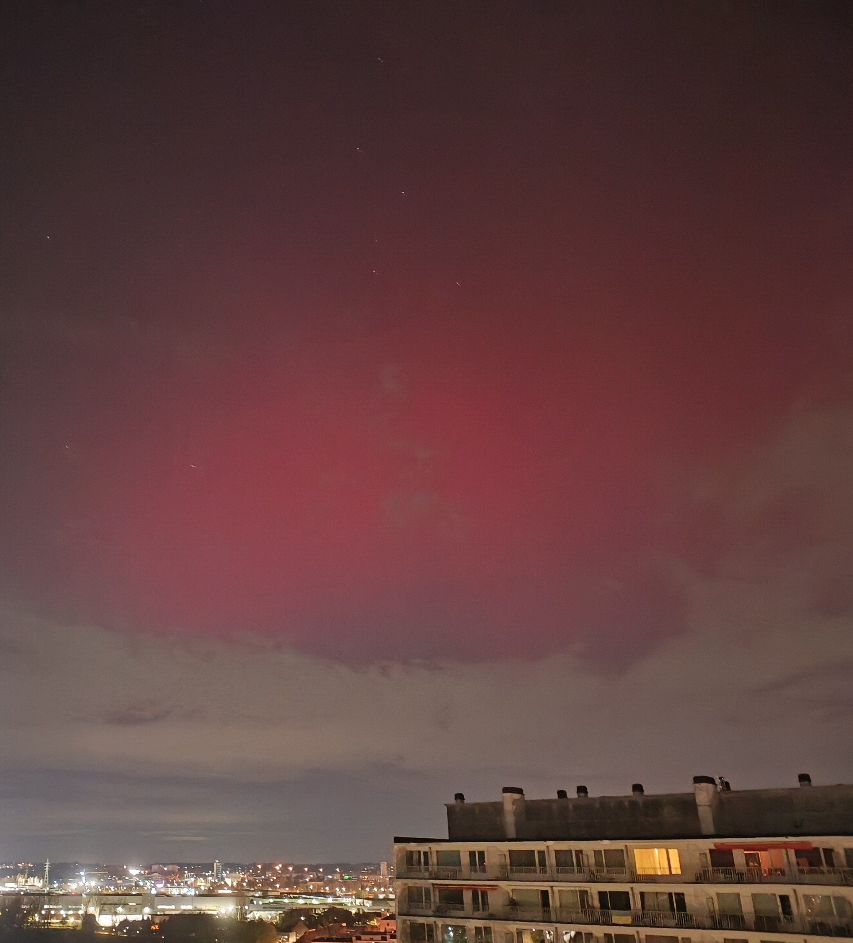12 november 2025, zeer vroeg in de ochtend. Collega’s van het STCE, het Belgisch ruimteweercentrum, bewonderen het noorderlicht vanop hun terras in Brussel en staan versteld door het kleurenspektakel. Het is immers vrij uitzonderlijk dat je dit fenomeen kan waarnemen in België (laat staan midden in een stad met veel lichtvervuiling), zelfs al is onze zon nu in de actiefste fase van haar cyclus.